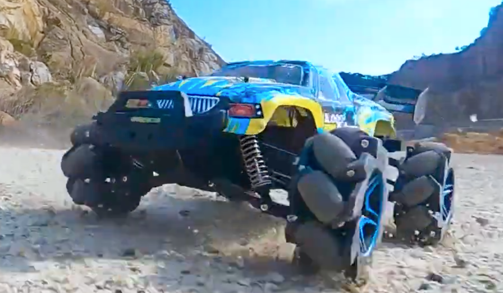 前進、後退はもちろん、真横にスライドや、360°ドリフトから45°クライミングもこなす。
