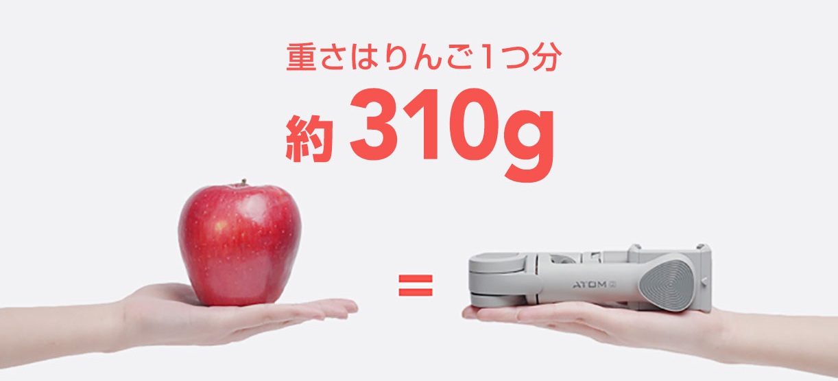 「SNOPPA ATOM2」の重さは310g。約りんごひとつ分の重さで、折りたたむと164mmとコンパクト。