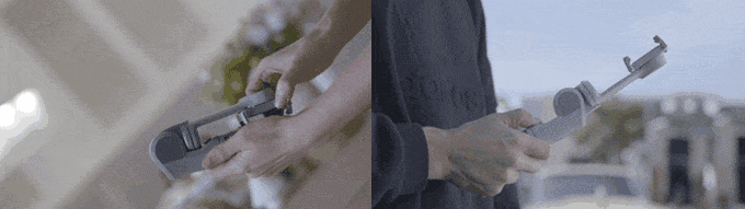 ジンバルモードでは288mm、自撮り棒モードでは350mmの長さに展開できる。さらに三脚機能も付いているため、ハンズフリー撮影も可能だ。