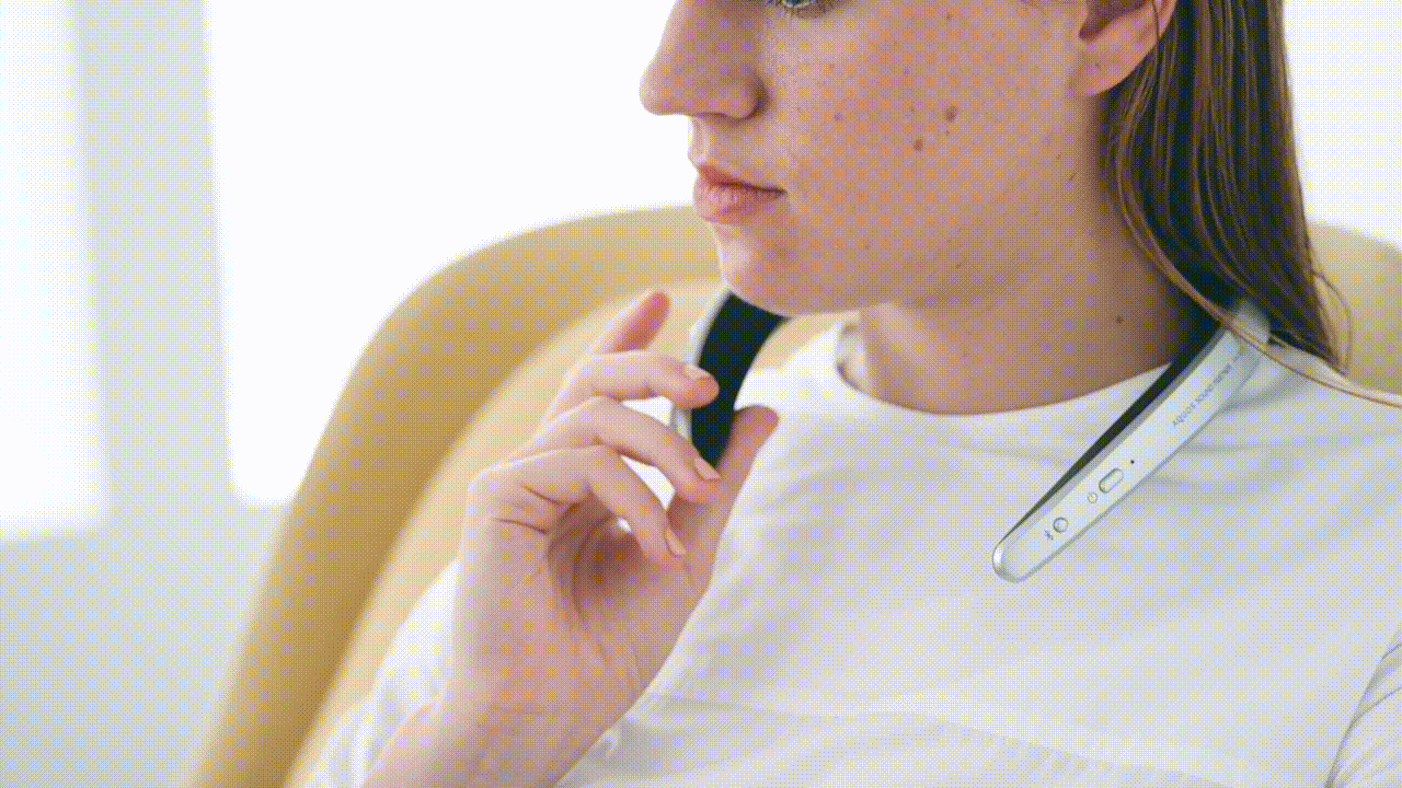 首に掛けてワイヤレスで音楽が聴けるデバイスにAIが搭載されたことで、音を楽しむだけでなく、「音で操作する」という新たな価値がプラスされた。