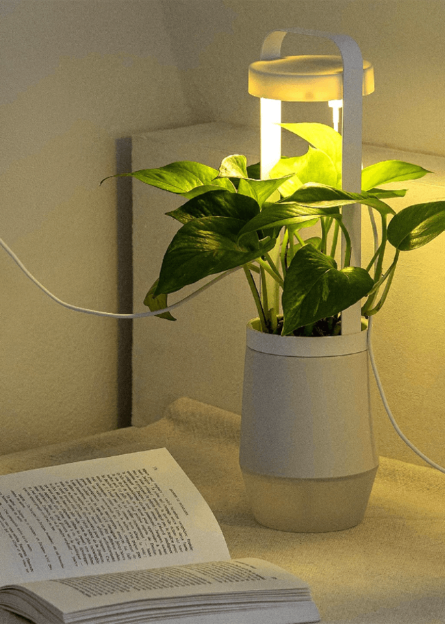 サムスン電子の園芸専用の高効率LEDチップが適量の光で植物を照らし、暗い室内でもすくすく育っていく。LEDライトは光量や位置を植物に合わせて調整可能。PCのUSBポート(USB-Aタイプ又はUSB-Cタイプ)に接続して使用する。