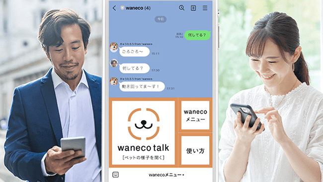 「waneco talk」は、愛犬や愛猫とLINEのメッセージを通して、まるでトークしているような体験ができるサービスだ。
