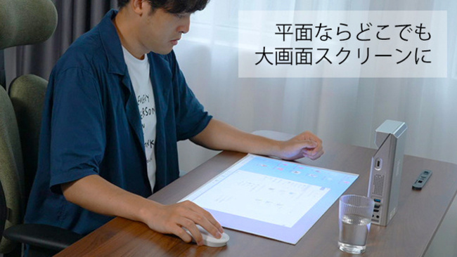 SF映画でよくある、光る空間モニターを指でピッと操作するあの動き……それを実現させたのが、テーブルや壁に投写した映像に触れて操作するPC「Aipc」だ。