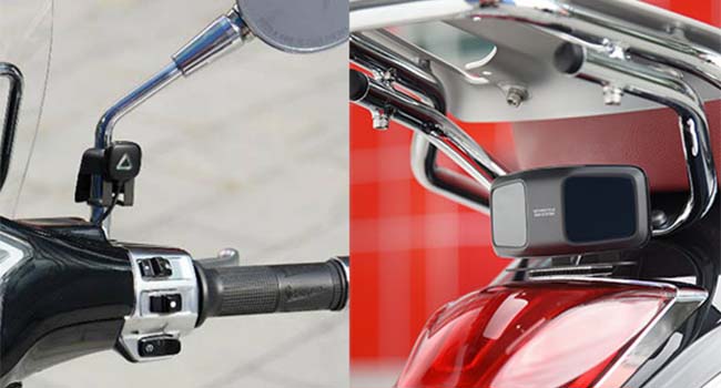 左右のミラーでは確認しにくい後方の車両の距離を検知して、インジケーターを点灯させることでライダーに注意を喚起する。夜間のライト反射や雨の日などで、目視での確認が難しい状況でも後方から車両が近づいていることを知らせてくれるので、安心して運転できる。