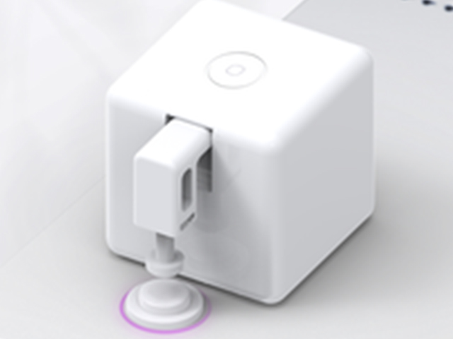 部屋の照明からコーヒーメーカー、車庫のシャッターまで、家にあるスイッチの近くに「Fingerbot Plus」を貼り付ける。スマートフォンの専用アプリから指示を送ると、小さなアームが動いてスイッチを押し電源をオンにしたりオフにしたりリモートコントロールができる。