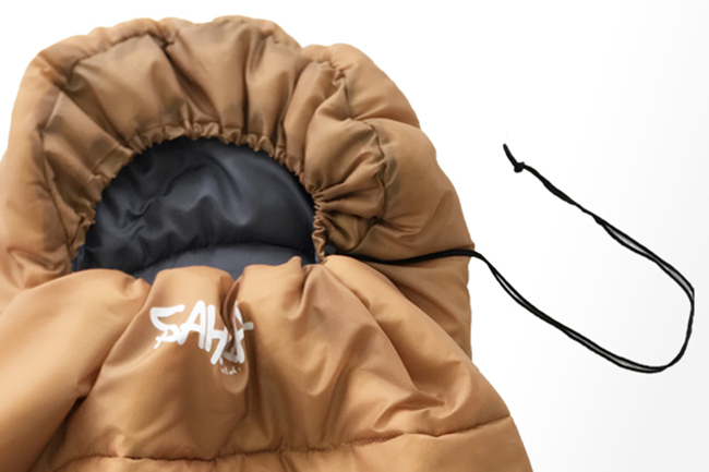 首元を引き締められるドローコード付きで、首回りの冷気を防ぎ、内部の温かい空気を逃しにくい。