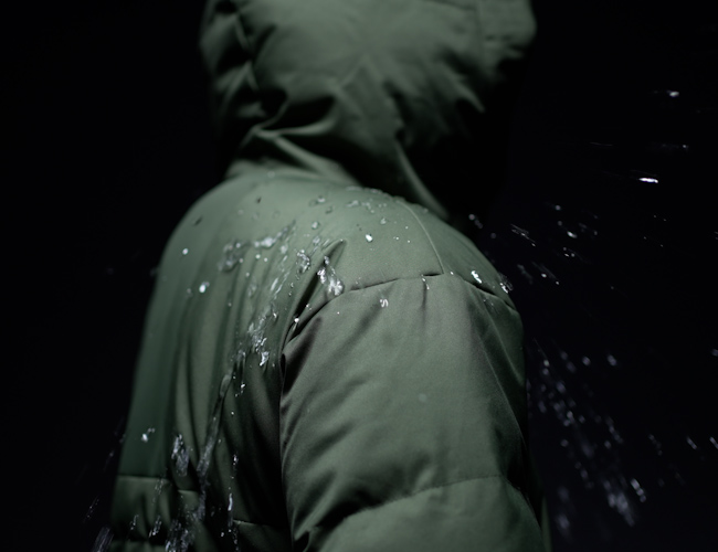発熱の他にも、冬のアウトドアシーンに嬉しいさまざまな特性が備わっている。まず、生地の表面には防風素材を使用。さらにはっ水加工が施されていて、雨にも強い。