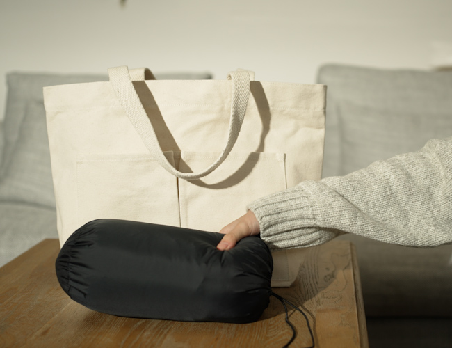 収納袋がついたライトダウンなら、バッグに入れてコンパクトに持ち運べるのも便利だ。
