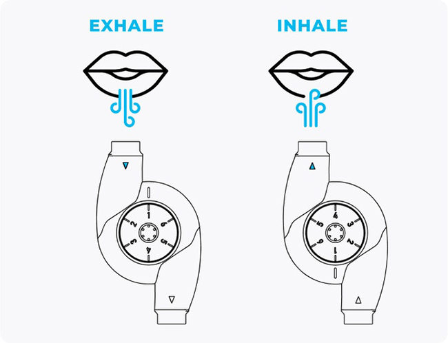 「Oumua」の使い方はとても簡単。自分に最適な抵抗レベルを設定し、口にくわえて呼吸をするだけでOK。朝と夜それぞれ5〜7分トレーニングする。
