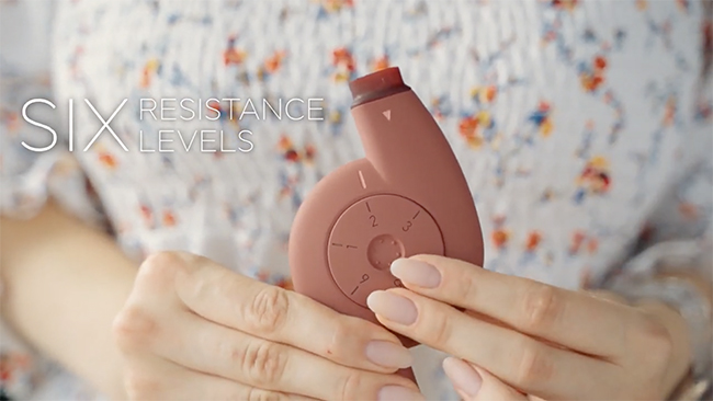 コンパクトかつシンプルなデザインで、外出先で使っても人目が気にならない。抵抗レベルの設定ダイヤルは中央に凹みがあり、さらに「カチッ」と音が鳴る設計のため、暗闇や視力の悪い人でも使いやすいのも特徴だ。