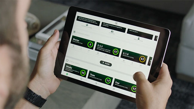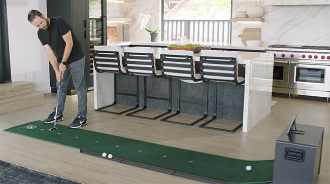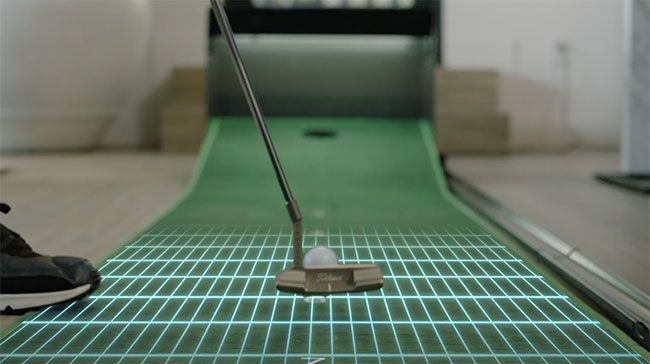 「PUTTR」は、家の中でも使えるサイズのパターマット。ホール側にカメラが搭載されており、コンピュータビジョン技術でパッティングを分析する。Bluetoothで接続された専用アプリから、改善案をフィードバックしてくれる。
