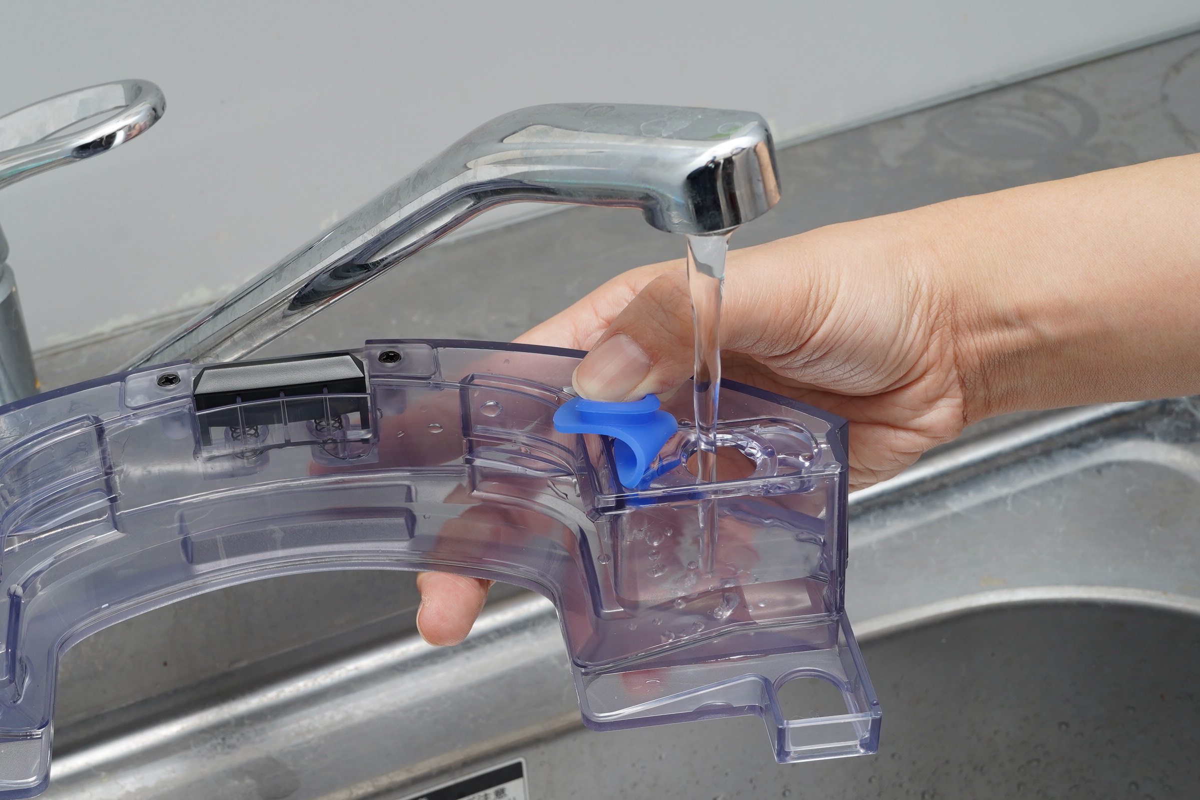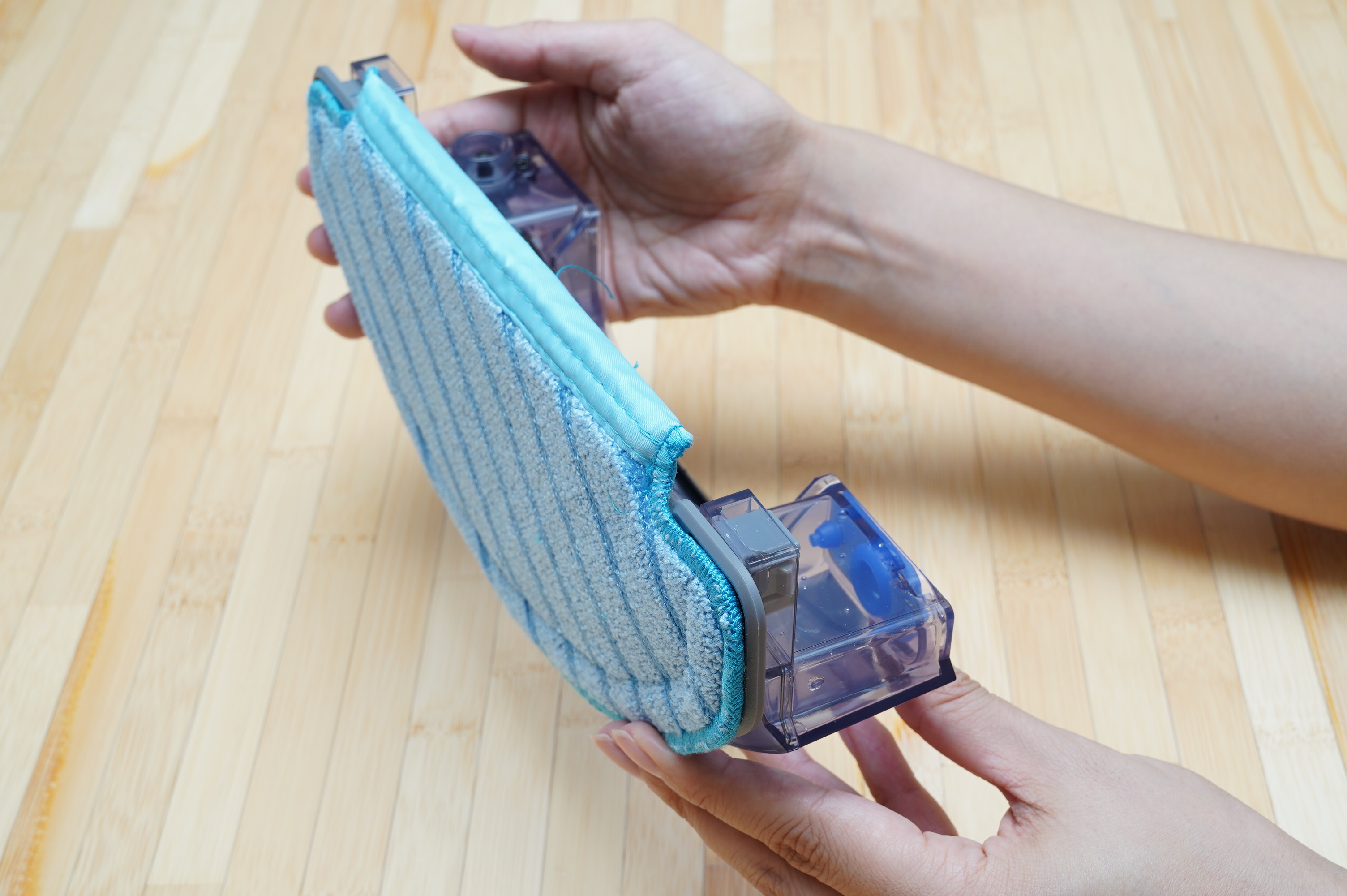 タンクに水を注ぎ、クリーニングモッププレートを設置。