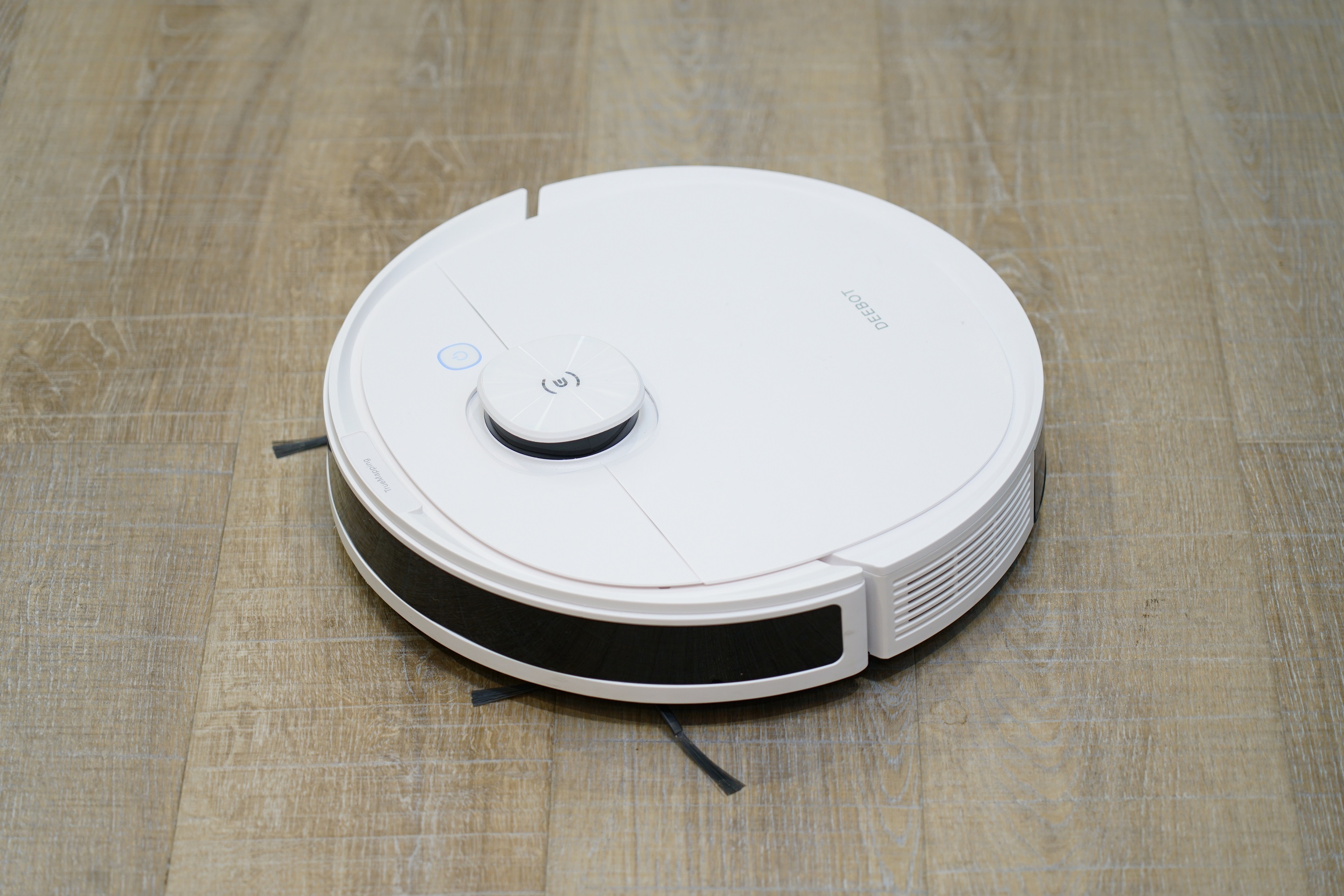 「DEEBOT N8+」の吸引力は2300Paと、これまでの主力機種「OZMO950」と比較すると約53%もアップ。2つの回転式サイドブラシが壁際のゴミを巻き込みながら、パワフルに吸引します。