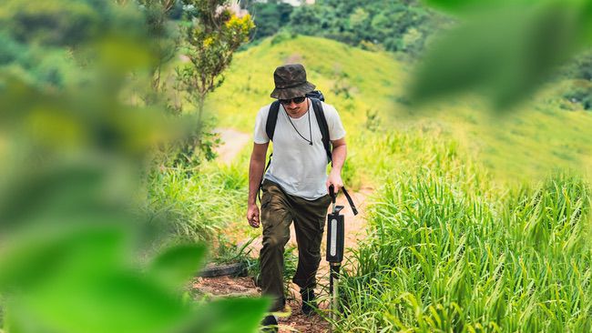 シートの高さは約50cm。人体工学に基づいた設計により、膝に負荷をかけず座って足腰を休められる。重量は1kg以下で、トレッキングポールとして利用しやすいデザインだ。