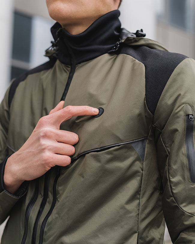 「HOMI 2.0 Sustain」は、冬の屋外でも温まる発熱システムを搭載したヒートジャケット。普段使いからアウトドアまで使えそうな、機能的な工夫がたくさん施されている点も特徴だ。