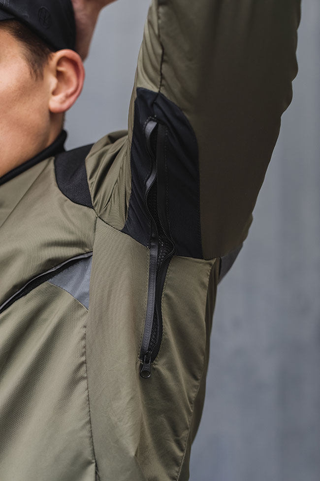 また背中と脇には、ベンチレーションを備えている。ジップを開けると、熱くなりすぎた体温を簡単にクールダウンできる。