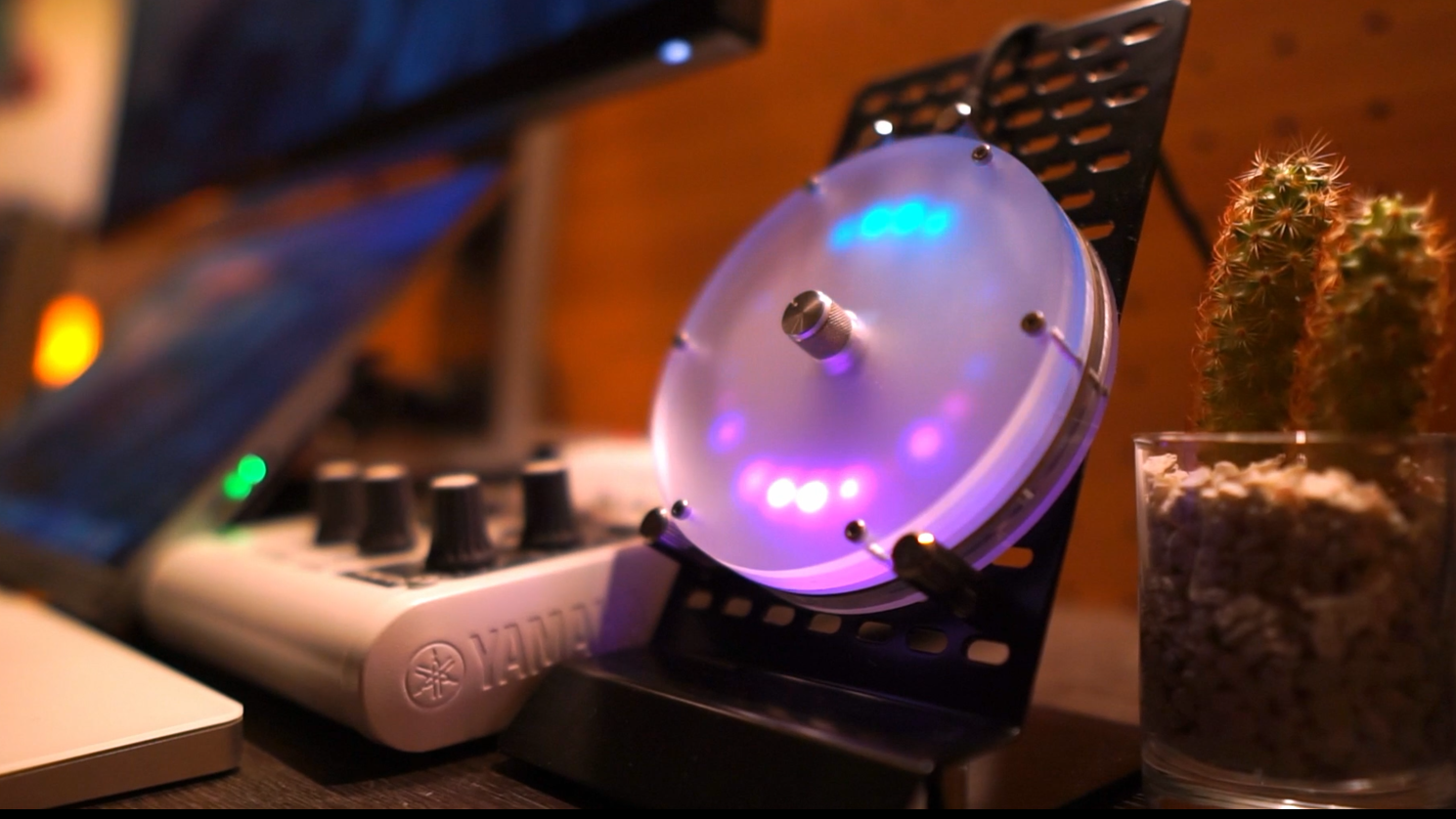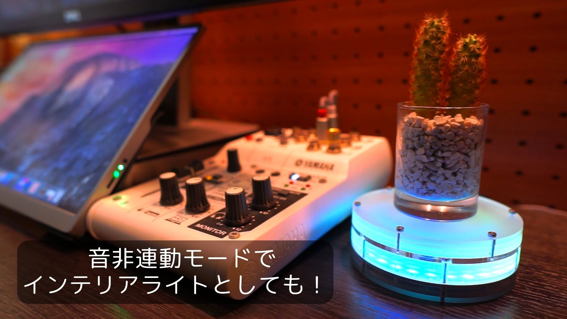 本体は多層のフロストアクリルを使用し、LEDの光を柔らかく拡散する。LEDライトは円を描くように並び、音楽再生機器やスピーカーから流された音楽に合わせて発光。内蔵マイクと音声入力にも対応しており、声で光らせることも可能だ。