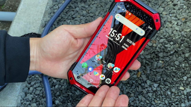 釣りをしていると釣った魚や、汚い水に触れてからスマホを使う事が多く、臭いがスマホに残ってしまいますが「TORQUE5G」は、泡ハンドソープを使ってしっかりと洗えます。