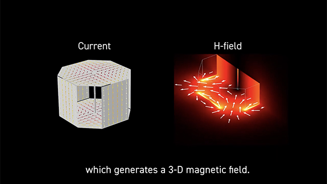 「Wireless power room S2」は壁や床に電流が流れるように作られていて、「マルチモード準静的空洞共振」という独自の送電器構造によって部屋全体に三次元磁界が発生し、各電子機器に取り付けてあるコイル型受信器と結合して効率的に給電する仕組みだ。