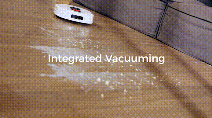 掃除機がけでは手に負えない汚れは、水拭きで対応。12Nの圧力でモップがけをしてくれる。モップについた汚れは、ステーションに戻ると自動で洗濯から乾燥まで行ってくれる。そのため、いつも清潔な状態でモップがけができる。さらに、モップがけ途中でモップの汚れがひどくなった時は、自動で本体に戻ってモップの汚れを洗濯乾燥。
