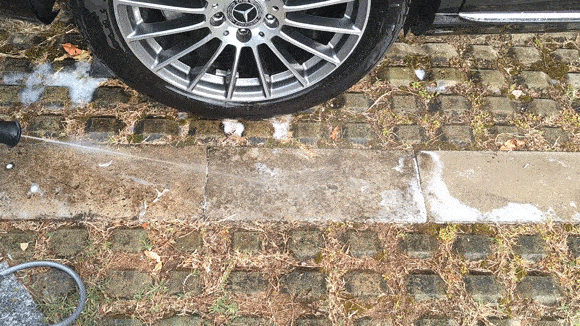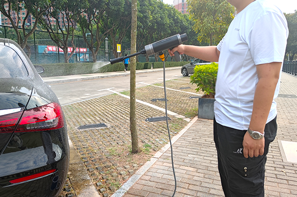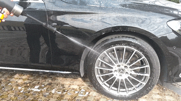 「Aiige」は50℃前後の温水にも対応しており、常温や冷たい水では落としにくい油性の汚れも効率的に洗浄することができる。また、付属のノズルを使いながら中性洗剤を用いて洗浄すれば、排気ガスなどによる汚れにも効果が期待できるだろう。