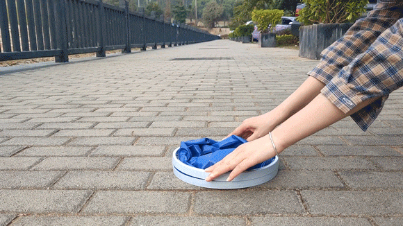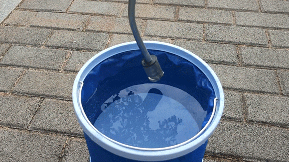 収納・持ち運びに便利な折り畳みバケツも付属している。使用しないときや持ち運ぶときには折りたたんでおけば、場所も取らずにどこへでも気軽に持ち運べるだろう。