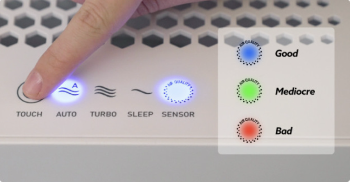 またマイクロダストセンサーを搭載しており、お部屋の空気の状態がひと目で分かる。周辺の空気の状況を自動的に感知。汚れの量に応じて3色のライトで表示し、可視化してくれる。