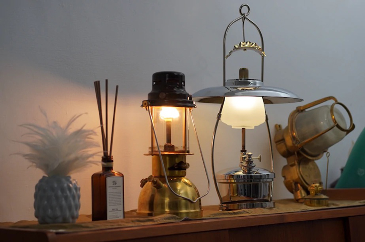 現代の一般的なキャンプランタンは、ホワイトガソリンを使用するか、LEDライトを使った電気で周囲を照らすタイプが大半だろう。
