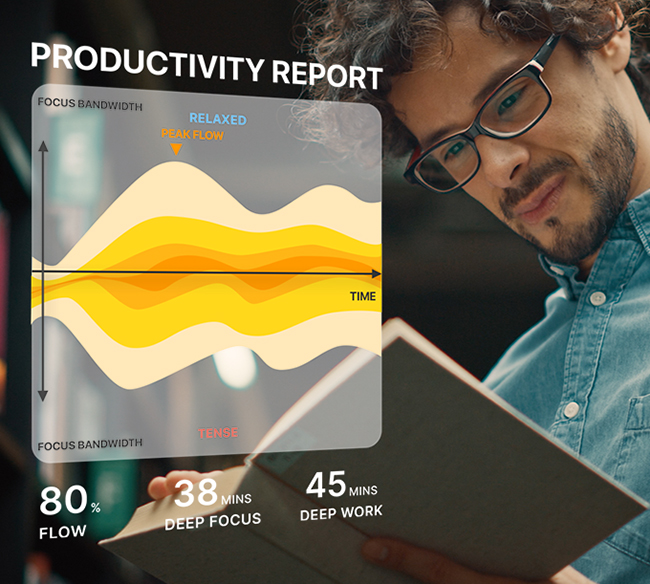 「FOCI 2」は、呼吸パターンから集中・落ち着き・ストレス・疲労などのメンタル状態を計測するウェアラブルデバイス。