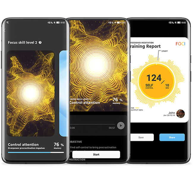 さらに、表示される波紋の制御を通して集中力を高める「バイオフィードバックトレーニング」機能も利用できる。最高レベルの4までマスターすると、集中力を意識的にコントロールし安定したパフォーマンスを発揮できるようになるという。