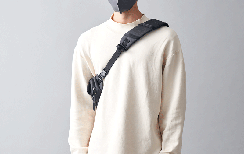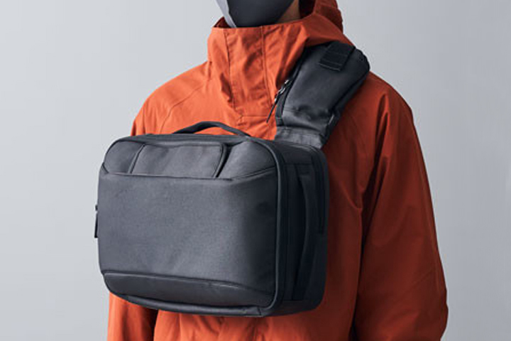 「VOLVE」はバッグポジション、フロントポジション、ブリーフスタイルと三つのスタイルをシーンに合わせて使用できる。スタイリッシュなワンショルダーは前後の切り替えもスムーズで、バックからフロントへの素早いポジションチェンジも可能だ。