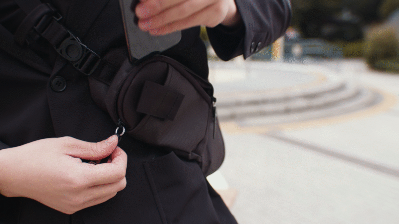 貴重品収納に便利な背面ポケットや、ショルダーベルトに搭載されたスマホや電子マネーがスムーズに取り出せるポケットなど「VOLVE」は多彩な形態と収納を可能としている。