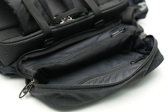 バッグには、使い勝手を考えて大小計17個の多機能ポケットがある。PCポケットもあるので、仕事などにも使える。なお、重い荷物を入れた際の負担を軽減する機能なども備えている。
