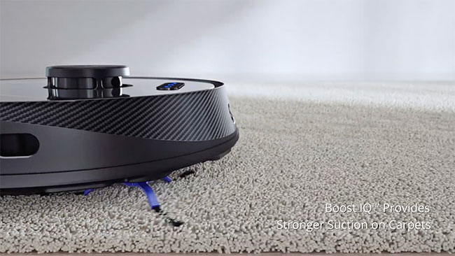 また18mmまでの段差なら乗り越え可能なので、フローリングからカーペットへの移動もスムーズ。さらにBoostIQテクノロジーにより、カーペットを認識すると吸引力を自動的にブースト。ゴミをしっかりと吸い上げる。