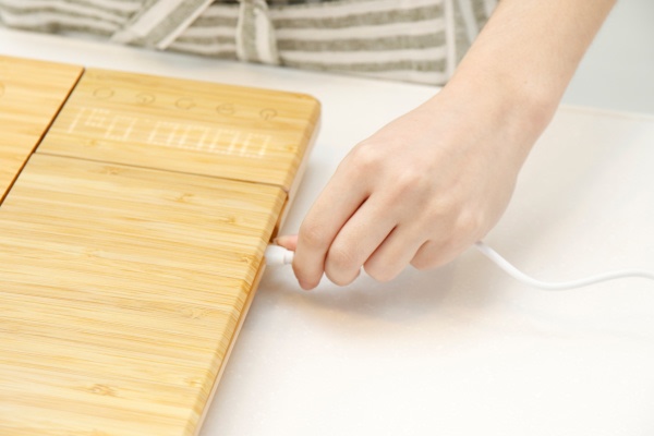 まな板の左側にあるマイクロUSB充電ポートから充電可能で、フル充電の場合なら約4時間30分連続で使用できる。