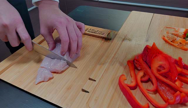 ふたつに分けて使えるセカンドボード機能を備えているので、カッティングスペースが倍になるだけではなく、肉や魚と野菜類などを別々にカットしたり、衛生的に調理したりできる。他にも、カットしたものと廃棄部分をまとめたり分けるなど、色んな使い方ができる。