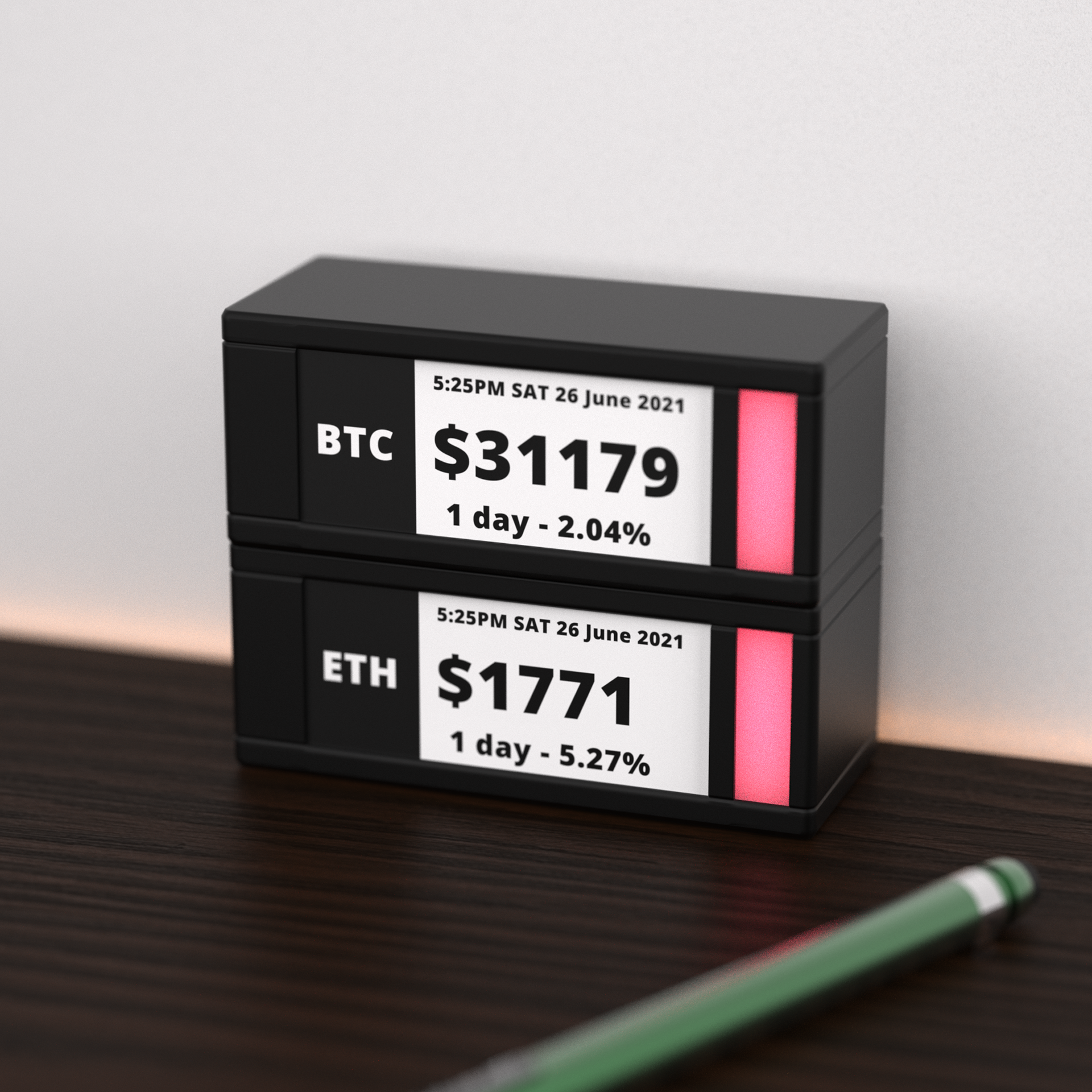 常に変化する株式や仮想通貨の相場をチェックするには、何枚ものモニターを用意しなくてはならない……。そんなイメージを塗り替えるのが、相場の変化をリアルタイム表示する卓上ディスプレイ「TickrMeter」だ。