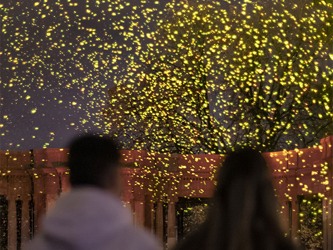 ホタルの光からインスピレーションを得たという「SPARK」は、何千もの光の火花が空中を浮遊し、空間を幻想的に演出する。
