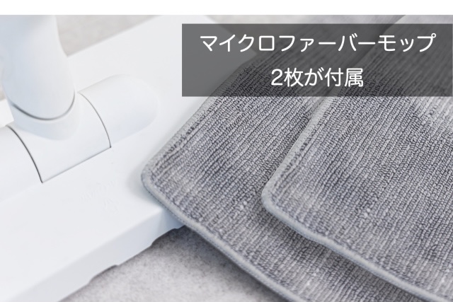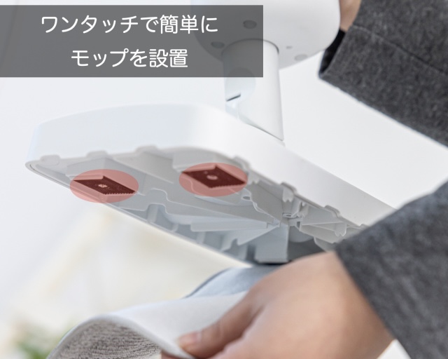 専用モップは、マイクロファイバーでできている。着け外しはマジックテープで簡単にでき、綺麗に洗ってまた使える。