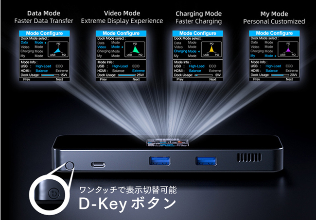 機能面では、接続する外部モニターやPCの動作環境に合わせて高リフレッシュレートで出力できる。また、信号レベルを調節して安定した外部ディスプレイに映像を出力しながら、高速データ通信を両立する。電源の供給を安定させられるほか、必要な時に負荷をかけてデータ転送や充電を短時間で行える。