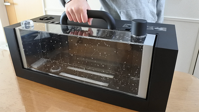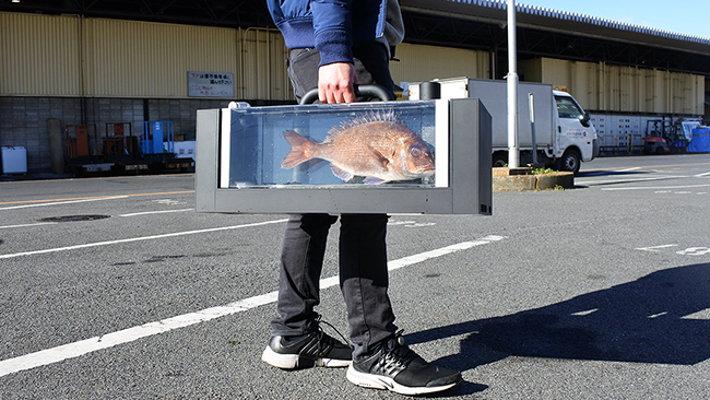 収容できる魚のサイズは最大40cmで、複数の魚の同時収容も可能。内部バッテリーで最大1時間稼働し、外部電源にも接続できる。