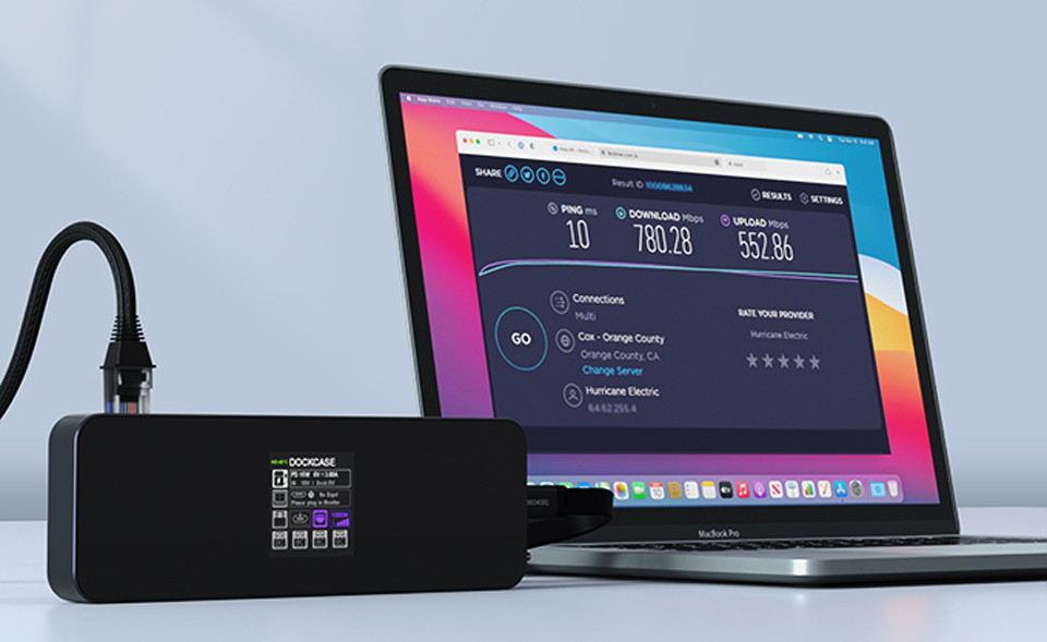 USBハブを使用していると熱がこもりやすいが、手動で内部温度が設定できる。中にターボ冷却ファンが付いていて、熱くなると自動的にクールダウンしてくれる。熱によるデータ転送のパフォーマンスの低下を回避し、安全に作業をできるように調整される。