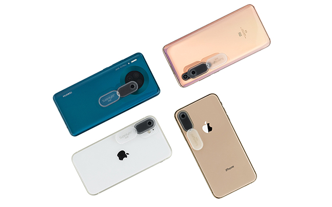 「SuperEyes」は、スマホのカメラ部分に本体が貼れるモデルであれば、ブランドやサイズに関わらず使用できる。電力は使わないので、充電の必要もない。