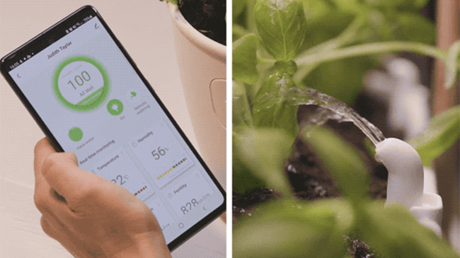 また、LEDライトと水タンクも内蔵していて、日照や水やりはアプリから遠隔操作が可能。