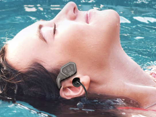 「EP-02」は、水深10mに1時間浸す耐水テストをクリアした完全防水なので、水泳や入浴中でも音楽を楽しめる。水の中で音を感じるのは、ほとんどの人にとって新感覚ではないだろうか。