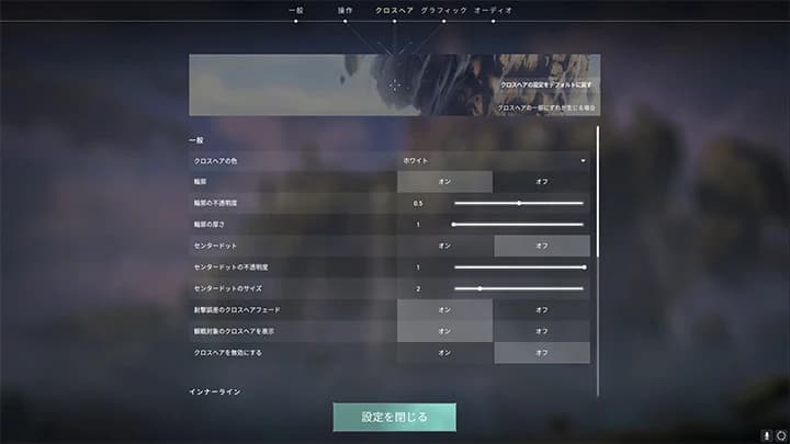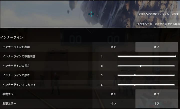 クロスヘアの色や形以外にも、エイムがしやすくなる細かな設定があります。