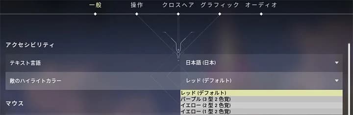 他にも、少しエイムがしづらいと感じたら「一般」の項目にある「敵のハイライトカラー」を変えてみると良いかもしれません。