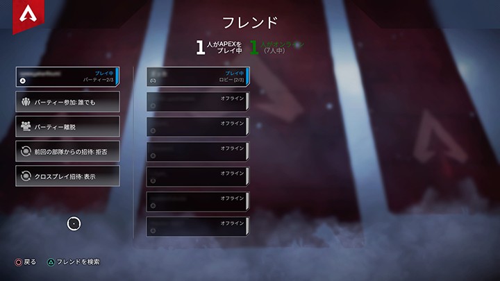 クロスプレイを有効にしていれば、あとは通常どおりプレイするだけ。フレンドとパーティーを組みたい場合は、招待するか、フレンドのパーティーに入りましょう。