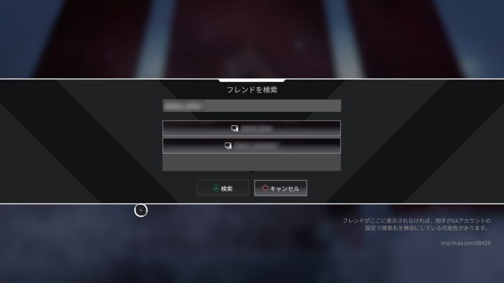 検索画面が表示されるのでIDを入力して検索し、フレンド申請を送りましょう。申請が承認されればフレンド一覧に表示されるので、あとは先ほどと同じ操作でパーティに招待できます。