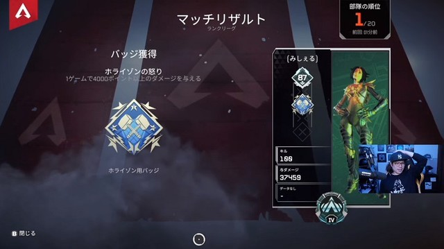 「PUBG MOBILE」の世界大会に出場するための練習などで少しApexから離れている時期もありましたが、自分の周囲ではApexをきっかけに配信の視聴数を伸ばした方もいて、ゲーム自体の勢いは感じていました。シーズン4ぐらいからは改めて仲間内でよく遊んでいて、シーズン8ではソロでのランクマッチも頑張っていました。